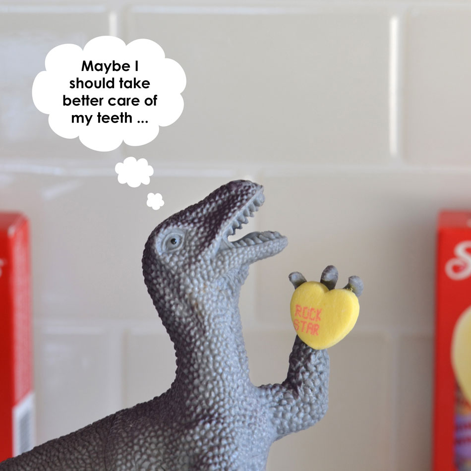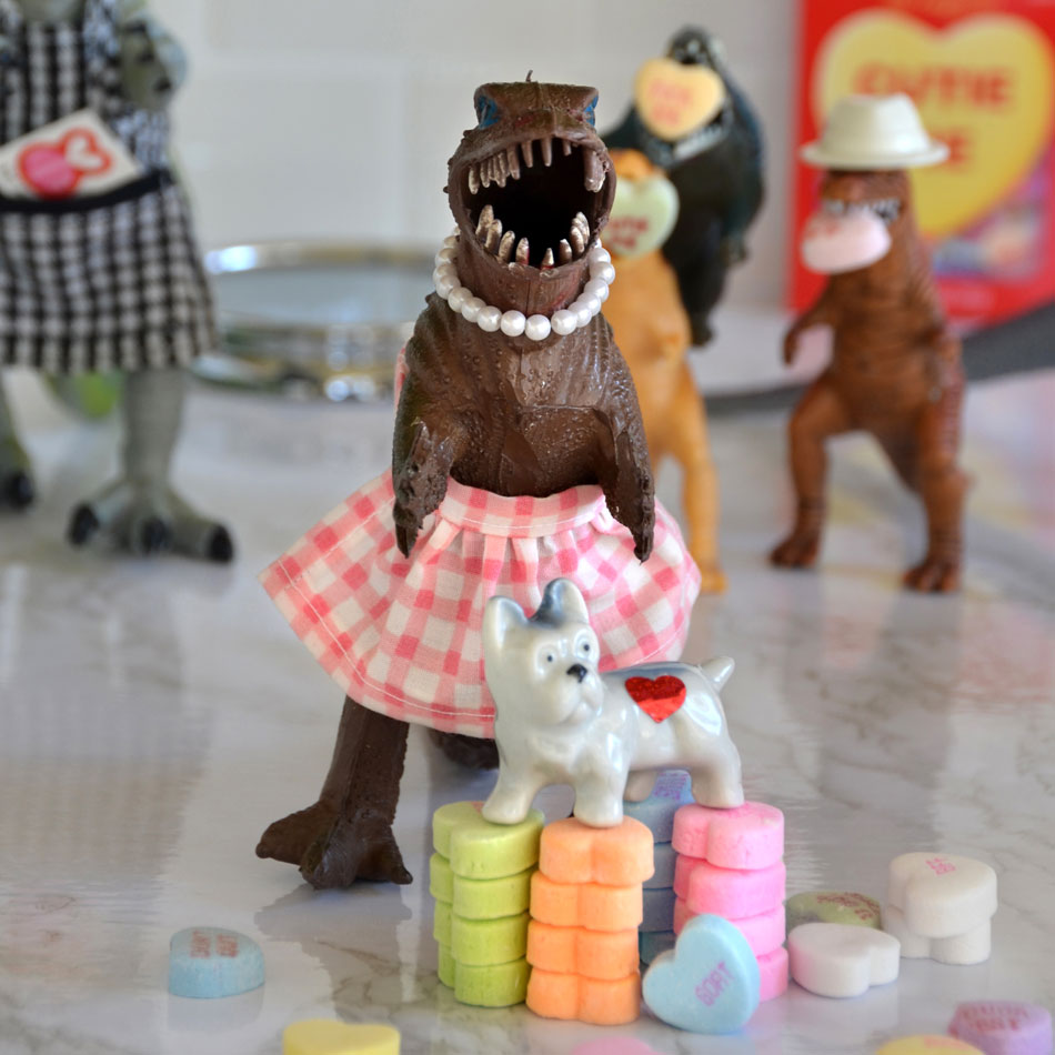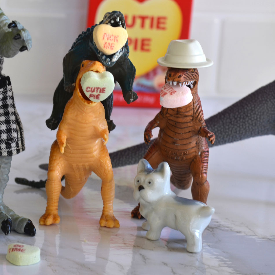 Blondie, Alex, and Dean pose with Valentine Sweethearts.