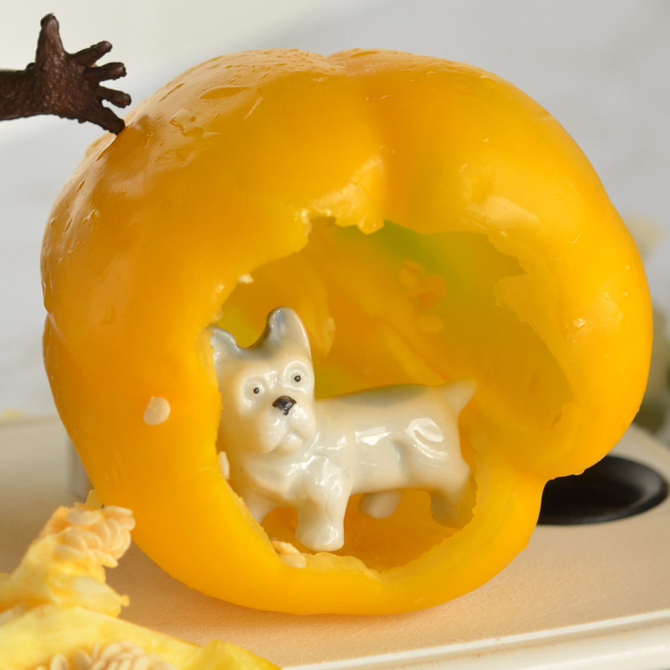Bjorn tries out the yellow pepper as a raincoat while Dean samples the dip.